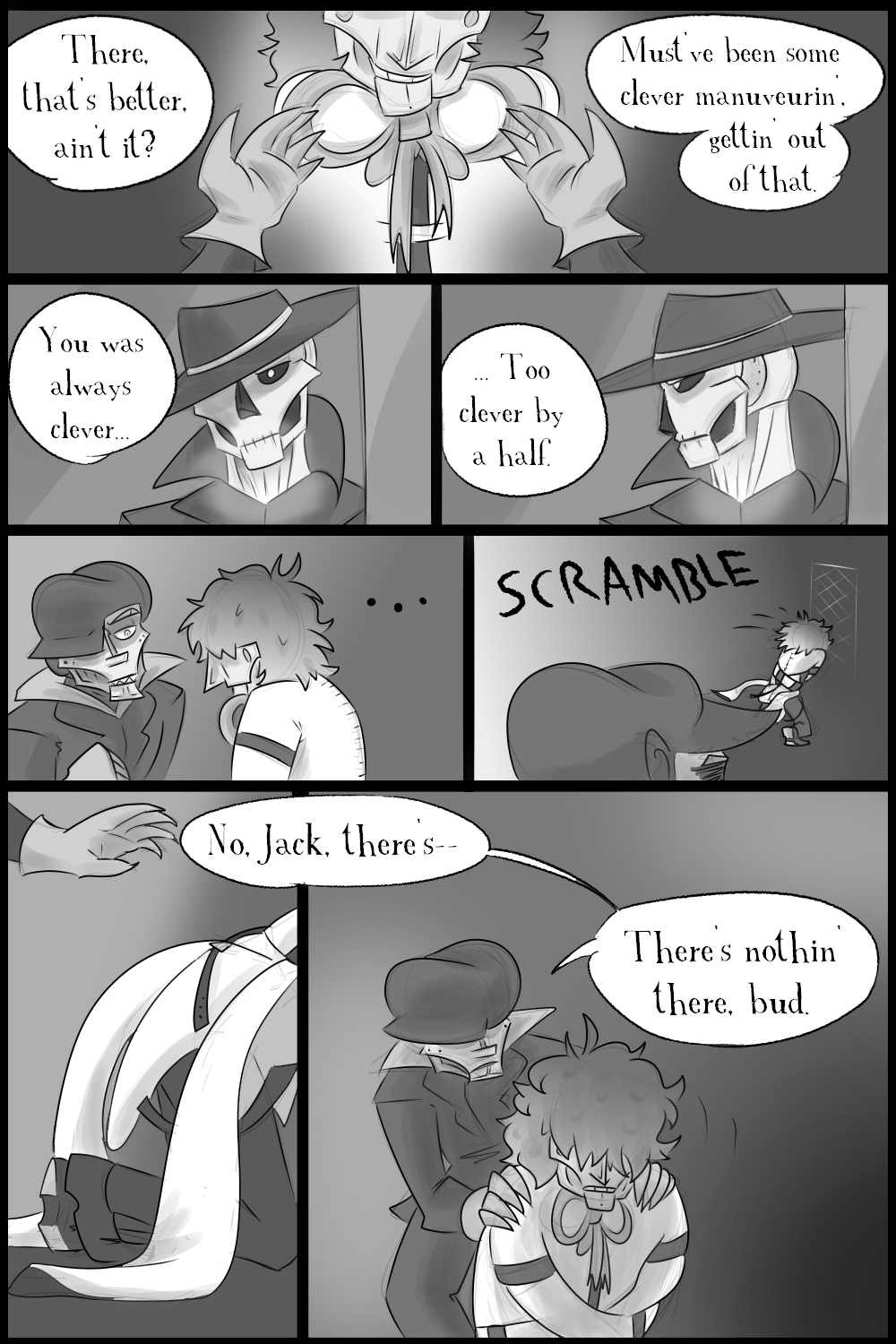 [ID: The seventeeth page of Jack’s Comic. It is in greyscale.